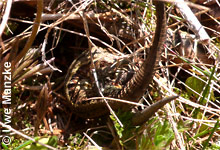 In den Lebensräumen der Waldeidechse ist sehr oft auch die Blindschleiche zu finden.